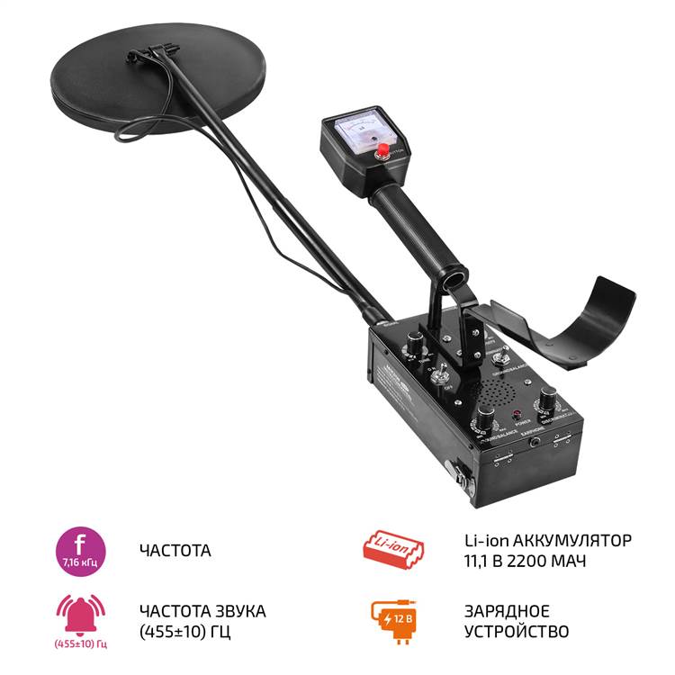 | Глубина обнаружения | максимально 5 метров для алюминиевой пластины 600х600х2 мм в сухой почве. |